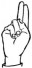 На ћирилици написано АЛЕКСАНДРА КРСМАНИЋ састоји се из 18 слова [?]. Исписано ћириличном једноручном азбуком за глувонеме: